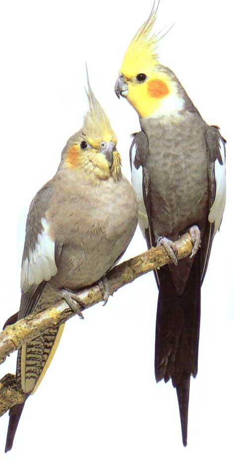 Tento papoušek, charakteristický svou chocholkou, je přibližně 33 cm dlouhý. Samec je šedý, se žlutou hlavou a červenou ušní skvrnou. Letky jsou bílé, spodní strana ocasu černá. Samička má hlavu šedožlutou, přičemž ušní skvrna je matnější než u samce. Letky jsou šedobílé, spodní strana ocasu šedobíle příčně pruhovaná. Mladí ptáci vypadají jako samice. Vedle přírodního zbarvení byla v zajetí odchována řada mutací, například lutino, pastelová, straka, perlová nebo šedohlavá.